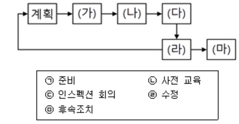 다음은 인스펙션(Inspection) 과정을 표현한 것이다. (가)~(마)에 들어갈 말을 보기에서 찾아 바르게 연결한 것은?