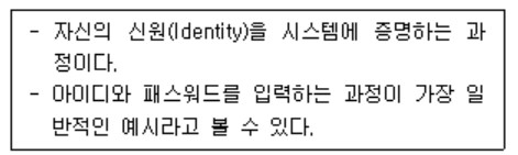 자신의 신원을 시스템에 증명하는 과정을 인증(Authentication)이라고 합니다.