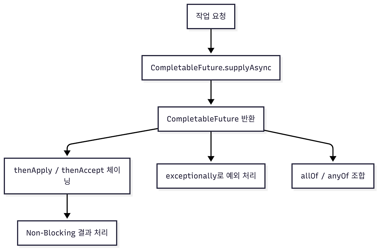 - CompletableFuture의 강점 (Non-Blocking, 체이닝, 예외 처리, 조합 기능)