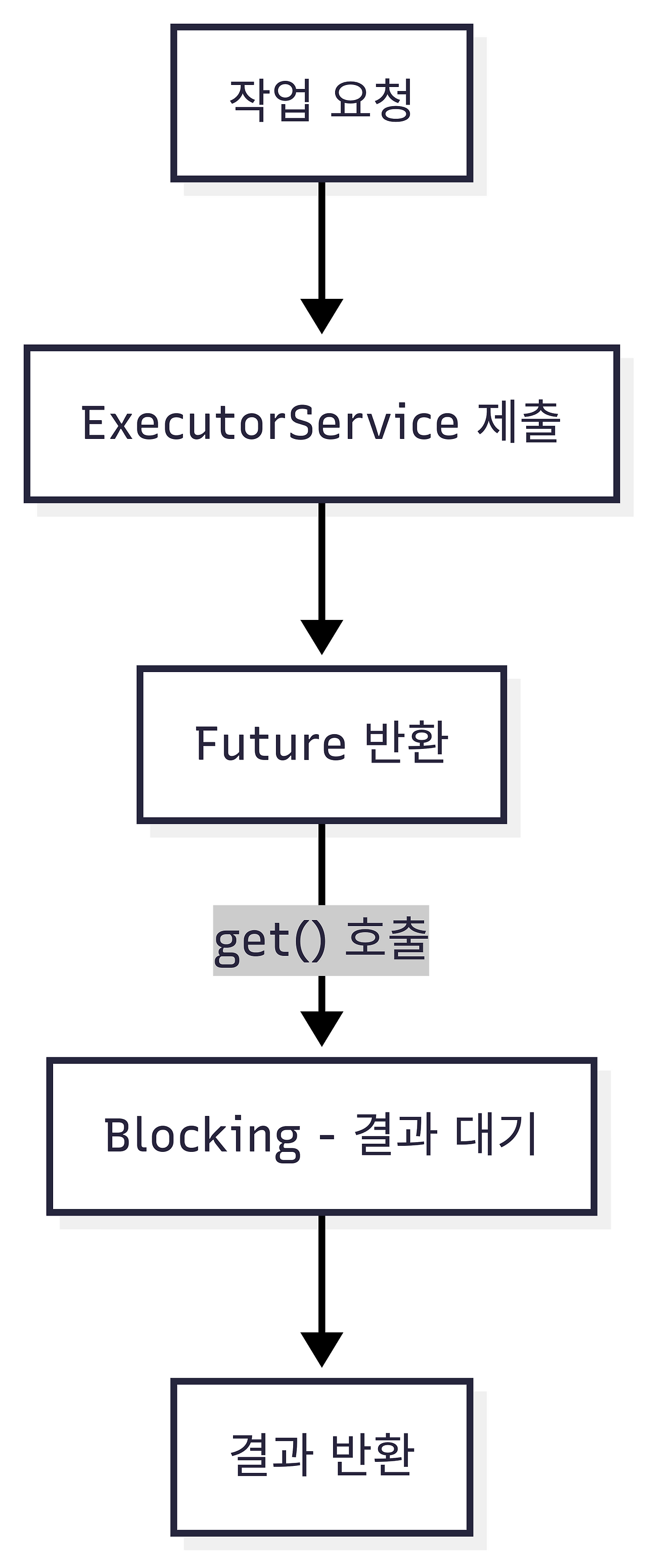 A: \`get()\` 호출 시 Blocking이 발생하고, 다수 Future를 조합하기 불편합니다. 예외 처리나 Non-Blocking 체이닝에도 제약이 있습니다.