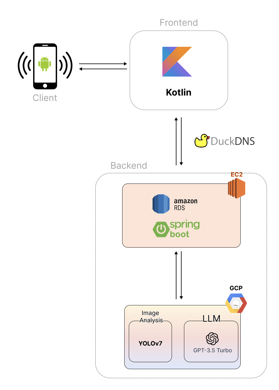 - 채식 식단 평가 및 피드백 제공 : AI 서버는 촬영된 음식 사진을 기반으로 사용자의 식단이 채식주의자로서 적합한지, 균형 잡힌 영양 구성을 갖추었는지를 평가하고 피드백을 제공한다. 사용자는 이를 통해 본인의 식단이 얼마나 건강하게 구성되었는지 명확하게 이해할 수 있다.